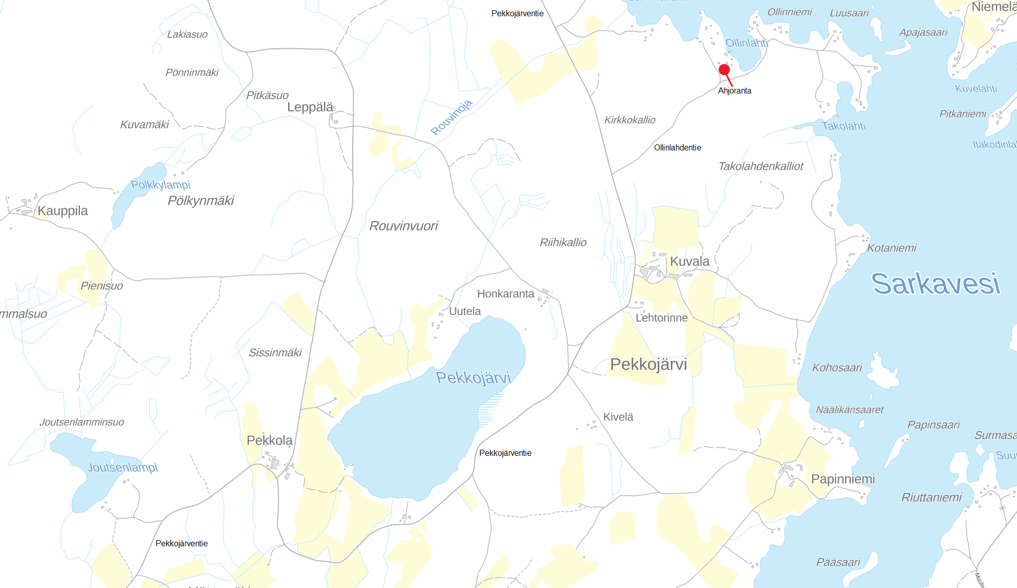 Helpoin reitti Kouvolasta Ahjorantaan kulkee Valkealan läpi tietä 368 Voikoskelle, josta jatketaan samaa tietä noin viisi kilometriä Mäntyharjun suuntaan Pekkojärventien risteykseen. Ollinlahdentien risteys sijaitsee reilu kilometri Pekkojärvestä, muutaman sata metriä Kuvalan Maatilalta eteenpäin.